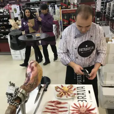 Seguimos como siempre realizando actos de promoción con nuestros clientes habituales, en este caso dando a conocer la Paleta Ibérica de Bellota D.O.P. Guijuelo PATABRAVA en Bodegas Santa Cecilia en Madrid.